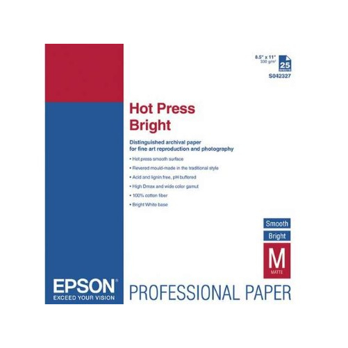 - Epson S042327 HOT PRESS BRIGHT 8.5 X 11 25 SHEETS - 265597