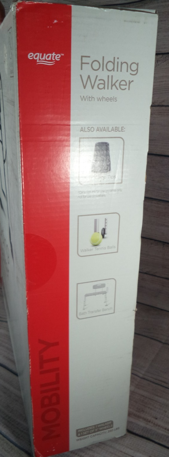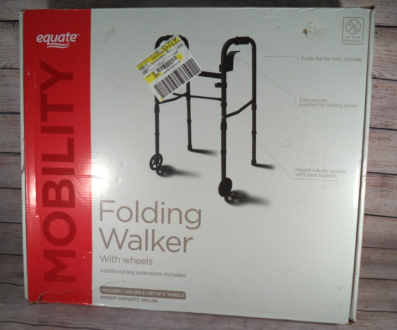 - Equate Foldable Walker with Wheels 350 lb Capacity Height Adjustable Black NEW