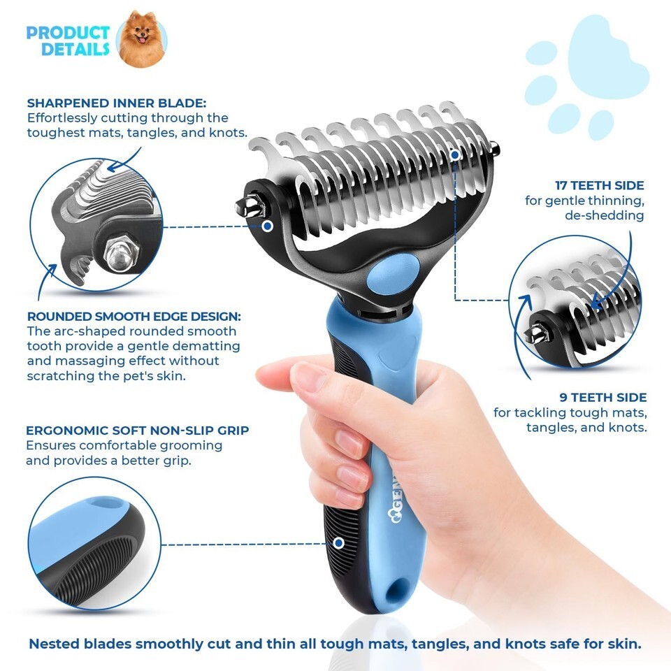 Dual-Sided Design: Start with the 9-teeth side for effortless removal of stubborn mats, tangles, and knots, then switch to the 17-teeth side for effective deshedding and thinning.