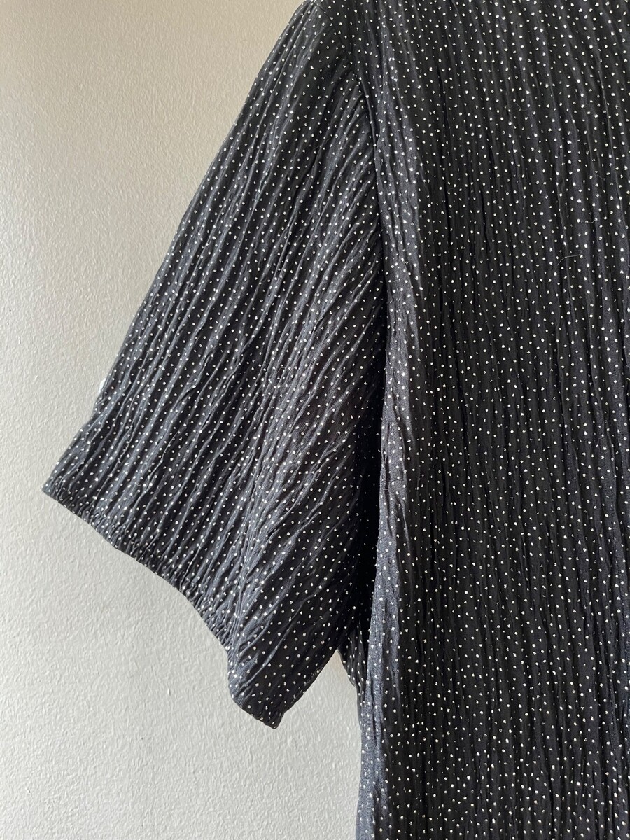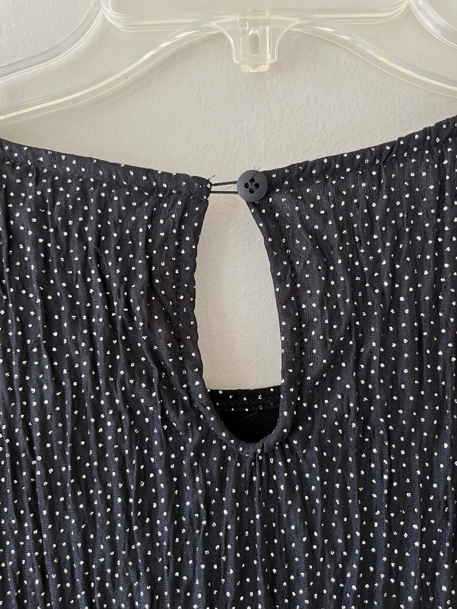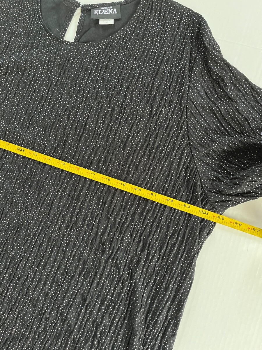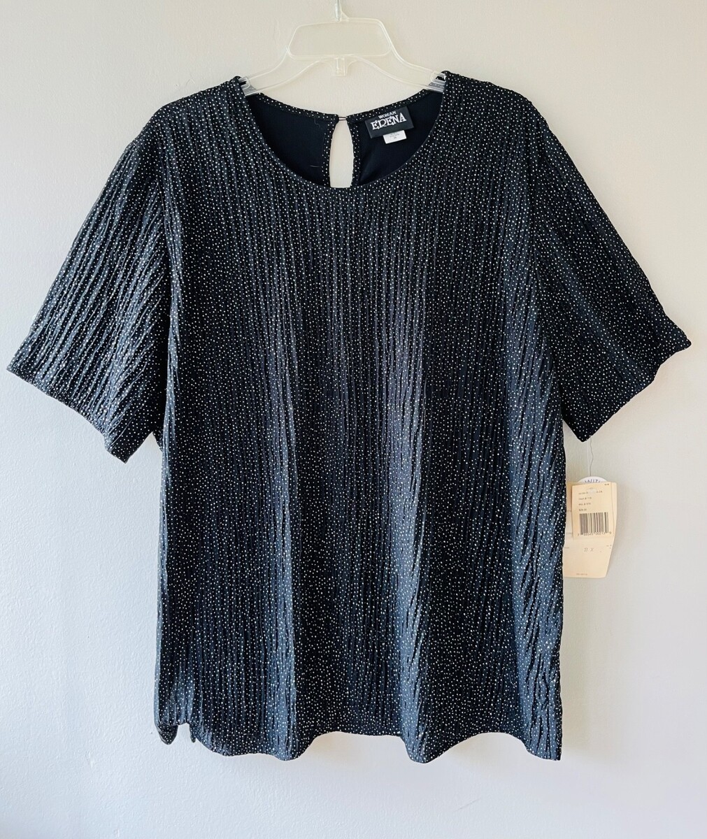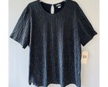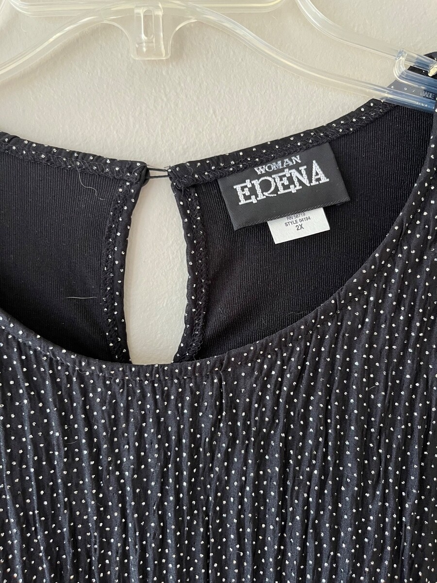 - Erena Plus Sz 2X Black Pullover Shiny Blouse Textured Short Sleeves Side Slits