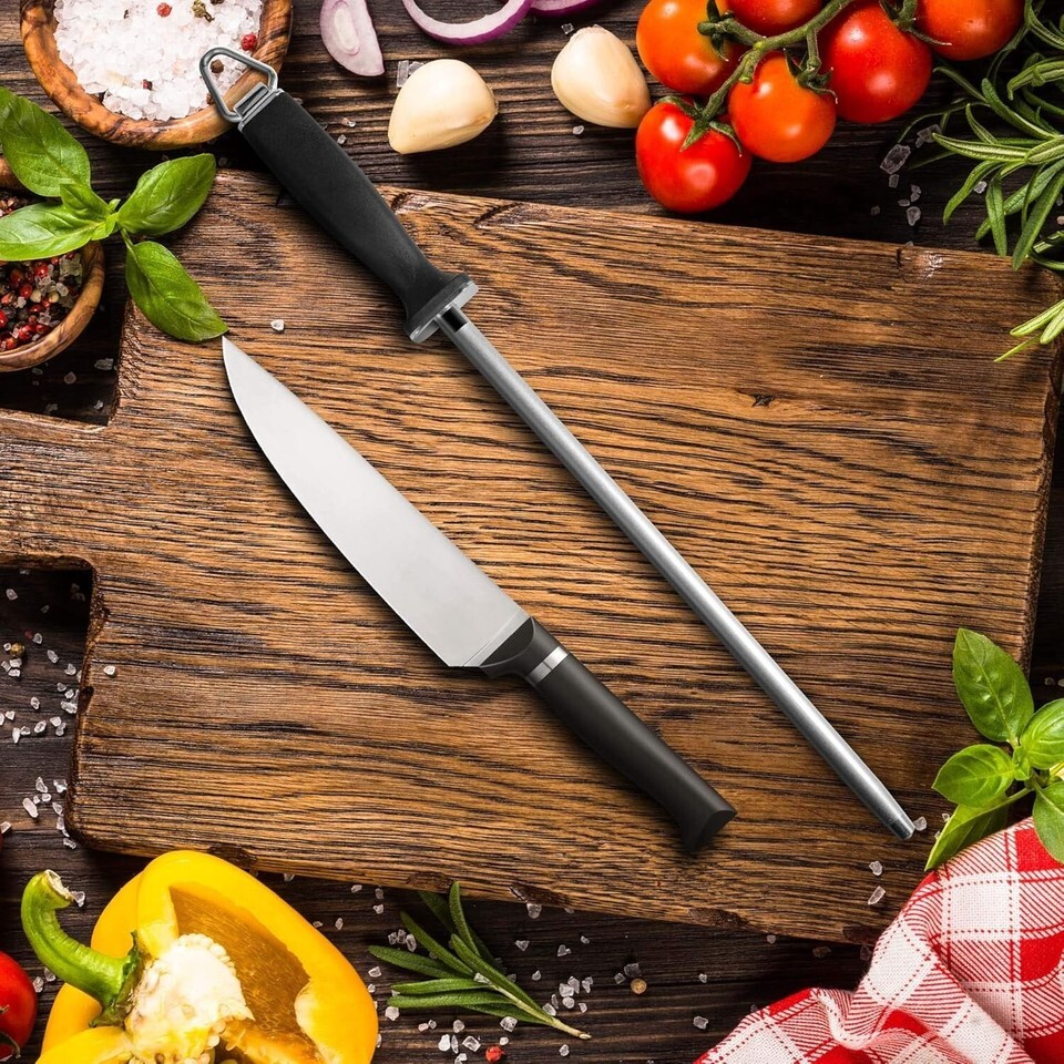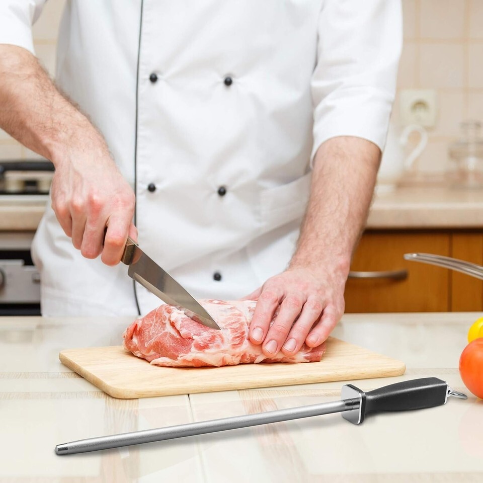 Say goodbye to dull knives and embrace the art of cooking with precision. With its beautiful design and practical features, this sharpening steel will be your go-to accessory for maintaining your kitchen's edge. Experience the difference today and invest in the quality you deserve!