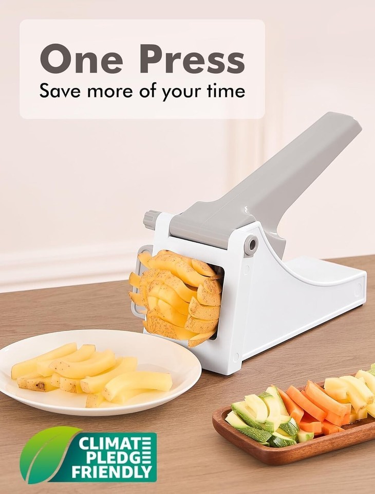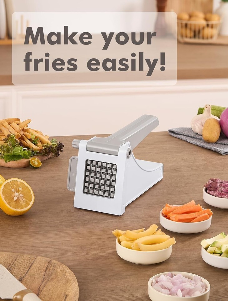 Make homemade fries effortlessly with our Ergonomic French Fry Cutter, designed with a stainless steel blade for easy vegetable prep.