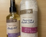 Pack of Essence of Beauty With Plant Extracts Essential Oils Made with Natural Ingredients No Artificial Dyes, Parabens, Sulfates or Petrolatum Foaming Bath Soak Oatmeal with Argan Oil (16oz) Body Oil Lavender with Rosemary Oil (6oz)