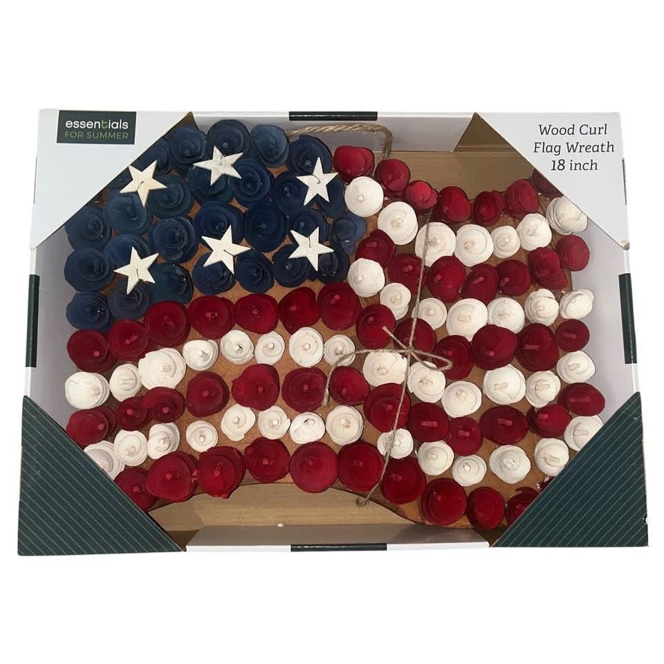 - Essentials for Summer Wood Curl Flag Wreath 18 Inch