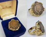 Primary image for ESTATE SALE vintage Indian head mens penny ring gold nugget tone SIZE ADJUSTABLE