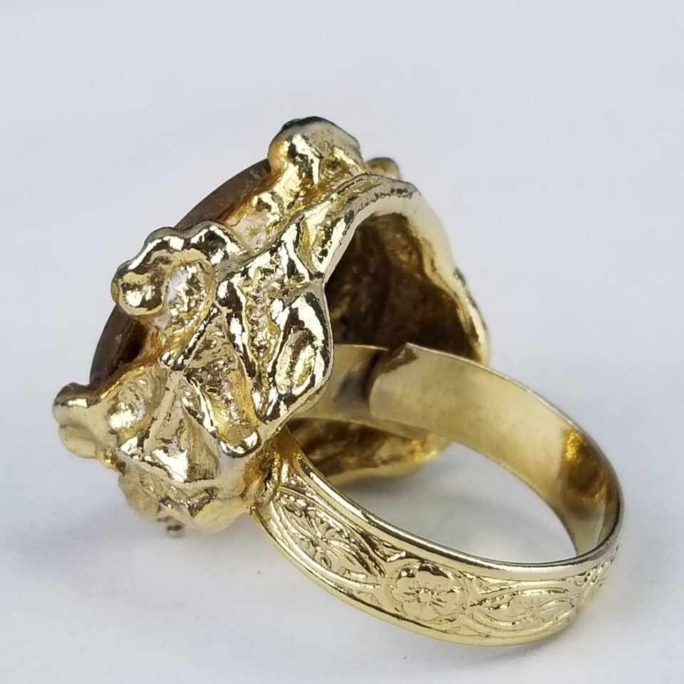 ESTATE SALE vintage Indian head mens penny ring gold nugget tone SIZE ADJUSTABLE