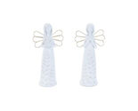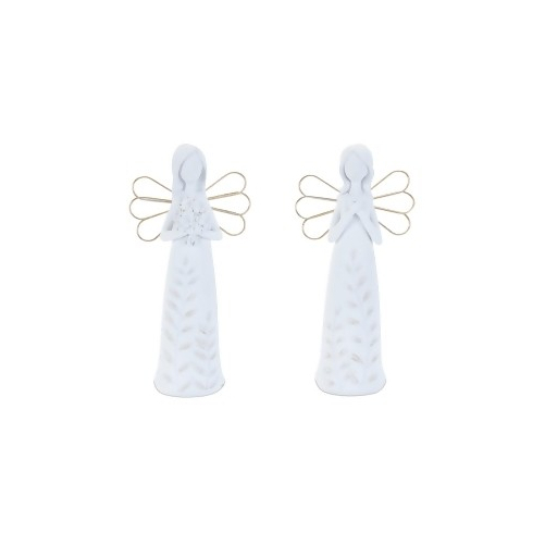 Graceful Angel Design: Elegant angel figurines with etched leaf patterns and wired wings bring a serene, nature-inspired touch. Soft, Calming Tones: White and beige hues with a white-washed finish create a peaceful, rustic feel. Set of Two Sizes: Includes two assorted sizes (9"H) for versatile, layered display options. Suitable for indoor use only