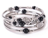 - Ethnic Style Flower Natural Stone Handmade Bangle Black
