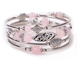 - Ethnic Style Flower Natural Stone Handmade Bangle Pink with Silver Accents