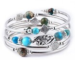 - Ethnic Style Flower Natural Stone Handmade Bangle