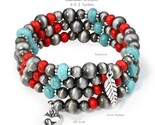 - Ethnic Style Round Turquoise Beaded Bracelet with Alloy Pendant