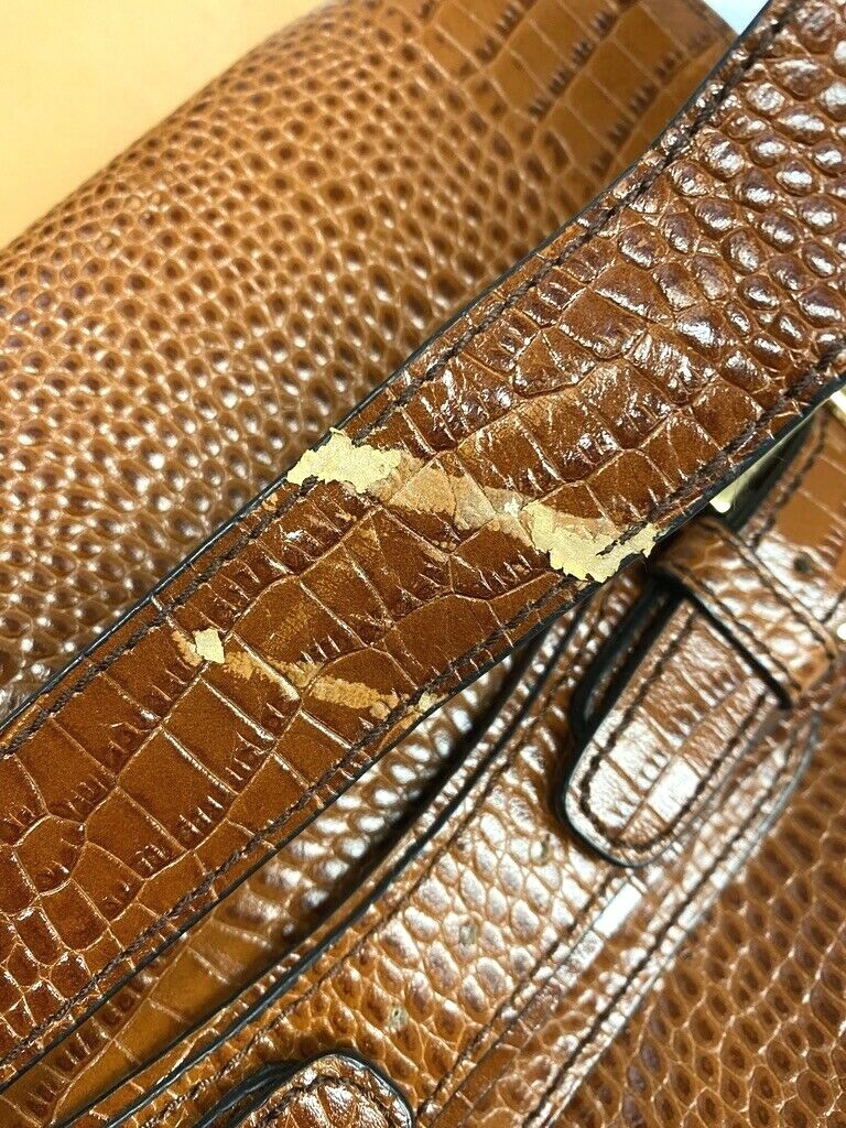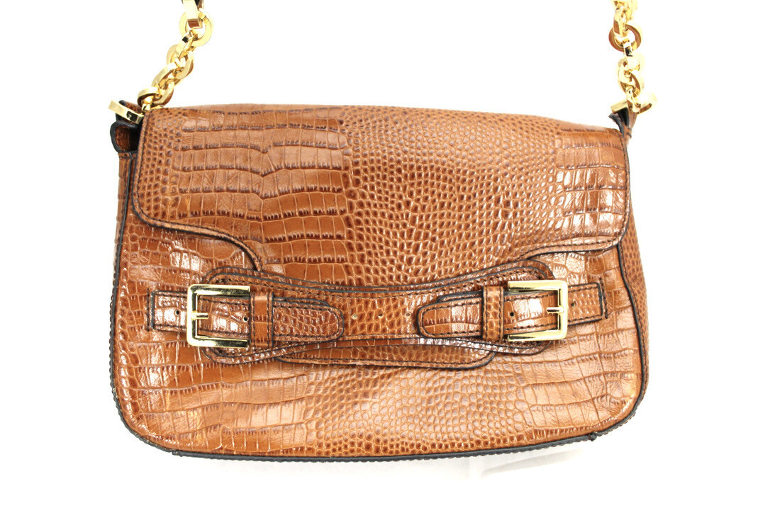 - Etienne Aigner VTG Shoulder Bag Purse Croc Embossed gold Chain Strap Caramel