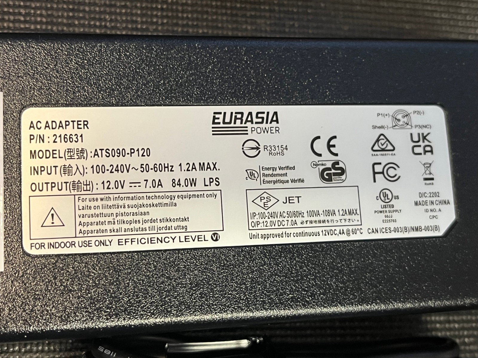 - Eurasia ATS090-P120 12V 7A 84W AC Adapter Power Supply Untested Lot of 2