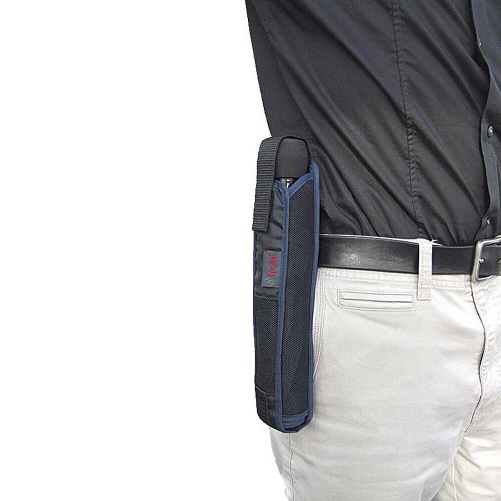 EuroSCHIRM Light Trek Umbrella (Navy Blue) Trekking Hiking Lightweight The first professional hiking pocket umbrella. Made from only the latest and best materials. Extra lightweight, extremely strong, Teflon-coated Polyester fabric with double stitched seams between segments Frame with special aluminum-profile-shaft, additional frame parts of fiberglass, anodized aluminum and fiberglass polyamide, all frame parts are highly elastic, decay- and corrosion-resistant High-density EVA hardfoam handle comfortable to the touch with a safe grip and integrated floating compass Each umbrella comes in a rugged Nylon case with Polyester mesh sides and carrying loop that allows it to be attached to your backpack or belt easily as well as an aluminum-carabiner for alternative mounting to the carrying loop EVA hard-foam-top has additional abrasion protection of the canopy, for leaving the sleeve case at home This small, convenient and lightweight hiking umbrella meets your high standards of stability and resistance even under unfavorable conditions Weight: 9oz (255g) Closed Length: 11" (28cm) Dimensions (when open) Canopy: 38.6" (98cm) Height: 24" (61cm) Width: 44.9' (114cm) The first professional hiking pocket umbrella. Made from only the latest and best materials. Extra lightweight, extremely strong, Teflon-coated Polyester fabric with double stitched seams between segments Frame with special aluminum-profile-shaft, additional frame parts of fiberglass, anodized aluminum and fiberglass polyamide, all frame parts are highly elastic, decay- and corrosion-resistant High-density EVA hardfoam handle comfortable to the touch with a safe grip and integrated floating compass Each umbrella comes in a rugged Nylon case with Polyester mesh sides and carrying loop that allows it to be attached to your backpack or belt easily as well as an aluminum-carabiner for alternative mounting to the carrying loop EVA hard-foam-top has additional abrasion protection of the canopy, for leaving the sleeve case at home This small, convenient and lightweight hiking umbrella meets your high standards of stability and resistance even under unfavorable conditions Weight: 9oz (255g) Closed Length: 11" (28cm) Dimensions (when open) Canopy: 38.6" (98cm) Height: 24" (61cm) Width: 44.9' (114cm)