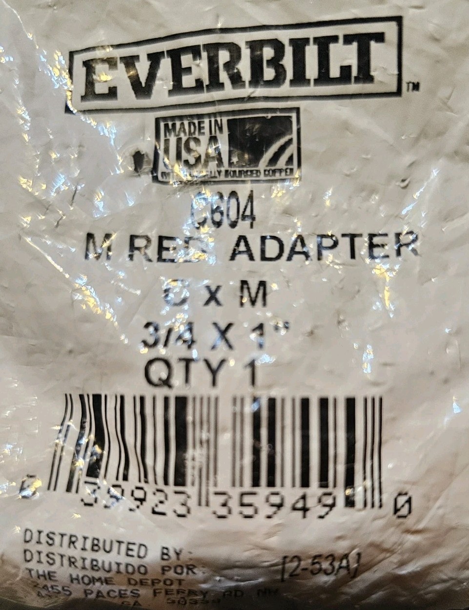 - Everbilt Male Adapter Fitting Pressure Cup x MIP Copper 3/4" x 1" 856991