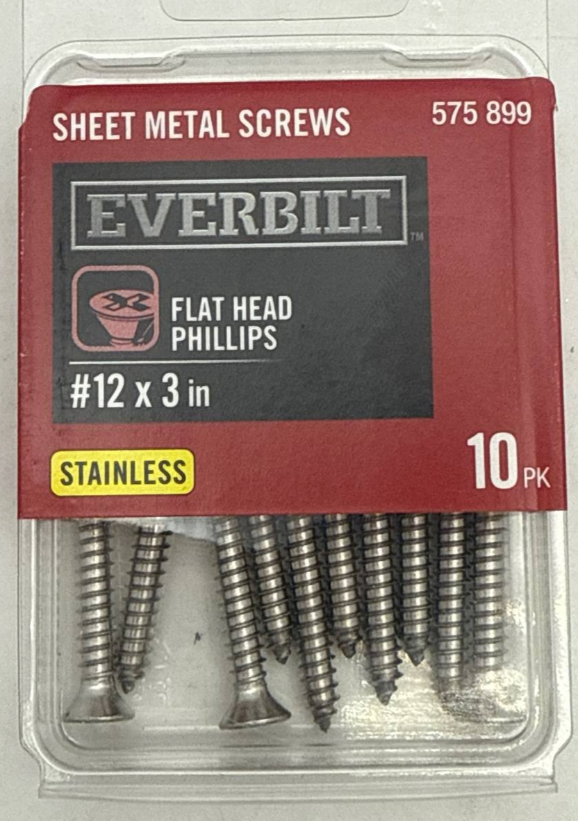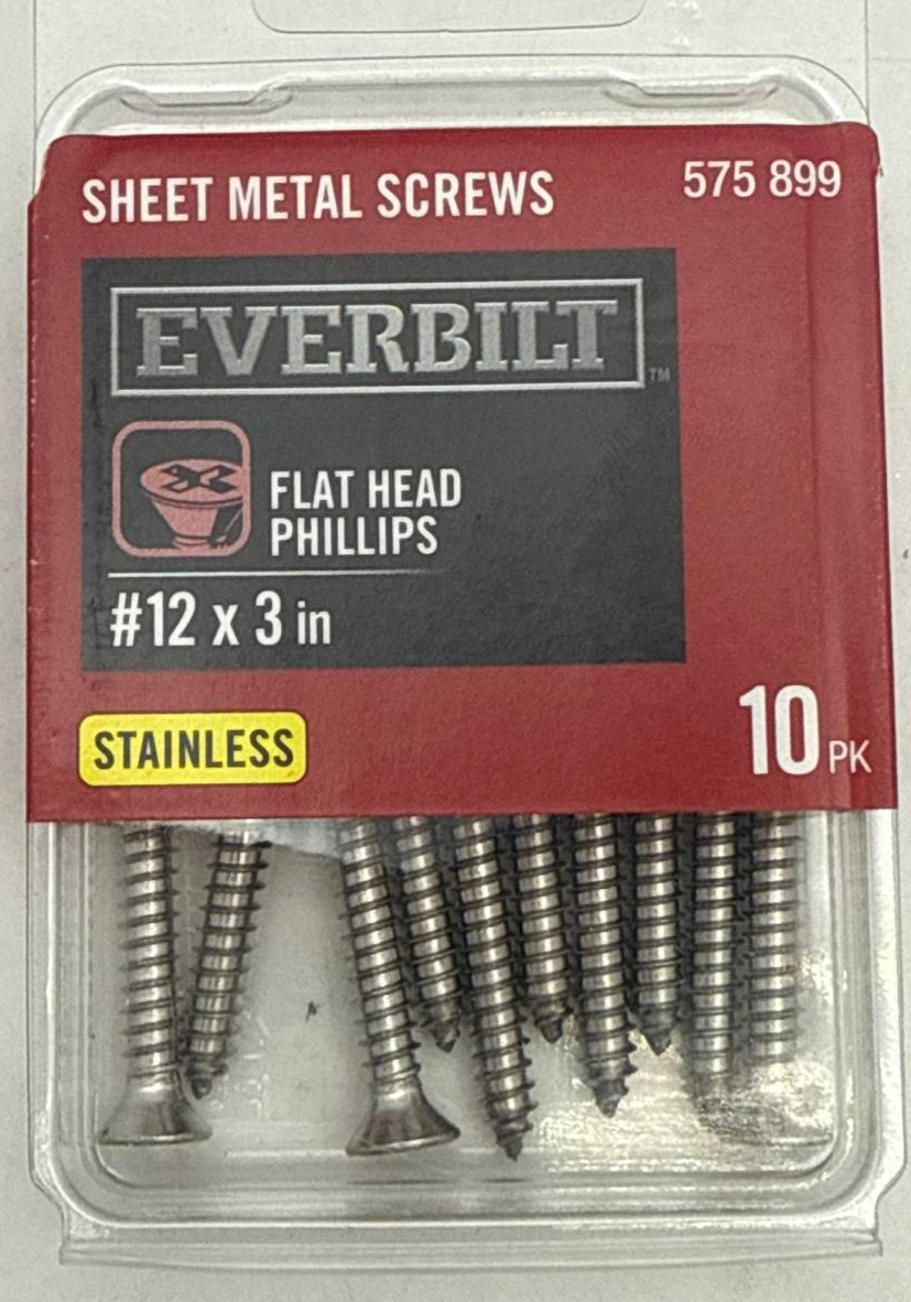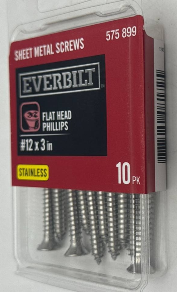 Everbilt Stainless Flat Head Sheet Metal Screws 12 x 3 In Durable Fasteners 10PK