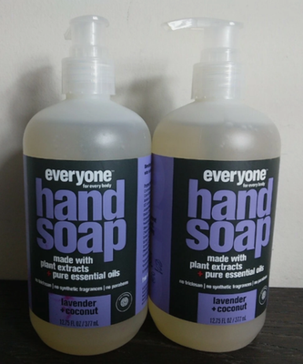 Everyone Liquid Hand Soap, 12.75 Ounce (Pack of 2), Lavender and Coconut ? CONTAINS: (2) 12.75 Ounce 100% Recycled Plastic Bottles of Everyone Lavender and Aloe Hand Soap. ? SCENT: Relax in a soothing blend of lavender essential oil and creamy coconut essence. ? USE: Rub hands together with soap and water for twenty seconds or more. Breathe in the pure scentsations before rinsing thoroughly. ? CONSCIOUSLY CRAFTED: Our products are EWG verified and made with love and without parabens, phthalates or synthetic fragrances. We partner with organic and regenerative growers to ensure the highest quality blends in each and every bottle. ? COMMITTED TO PEOPLE PLANET: We?re a family-owned B Corp built on honoring the well-being of all people and our planet. Our products are designed, developed and manufactured in Marin County, California, in a zero-waste, solar-powered facility. (description exceeds maximum possible length)