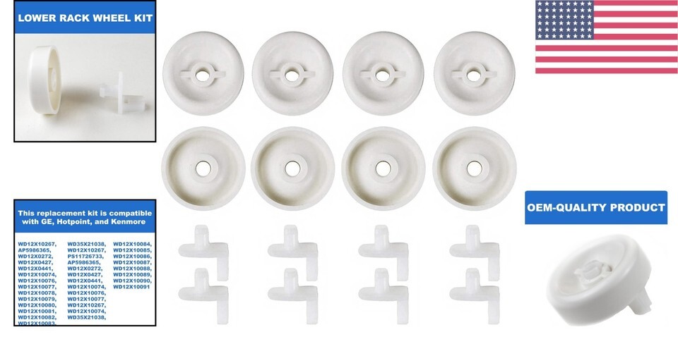 When it comes to maintaining the efficiency of your dishwashing experience, the Exact Fit 8 Pack Dishwasher Lower Rack Wheel Set is your ultimate solution. Designed particularly for GE and Hotpoint dishwashers, our kit guarantees effortless installation and a perfect fit.
