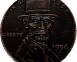 Descubre la exclusiva medalla de fantasía de 1956 con el iconico Abraham Lincoln en un diseño impresionante. Este producto muestra el centavo de trigo Lincoln original acuñado en 1956, distintivo por su representacion del presidente Abraham Lincoln en el anverso, acompañado por la inscripcion ?IN GOD WE TRUST? y el año tradicional de acuñacion. Se cree que esta pieza en particular ha sido modificada o especialmente hecha a mano, lo que se suma a su singularidad y puede representar una restriccion o una variante rara.