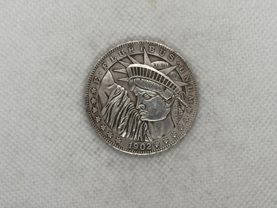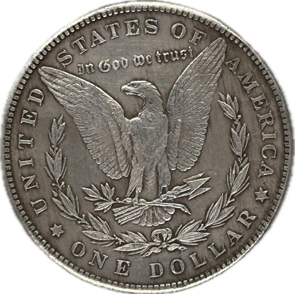 La inclusion del año 1902 añade un toque historico, a pesar de que la medalla no es una acuñacion original. El reverso mantiene la fidelidad al diseño clasico del dolar Morgan, mostrando un aguila majestuosa con alas extendidas, agarrando una rama de olivo y un manojo de flechas, emblemas tradicionales de fuerza y paz. Una corona de laurel mejora aún mas las imagenes, evocando estabilidad y una fuerte conexion con los Estados Unidos. La inscripcion "E Pluribus Unum", que representa la unidad en la diversidad, completa el caracter autentico de esta notable pieza, por lo que es una valiosa adicion a cualquier coleccion.