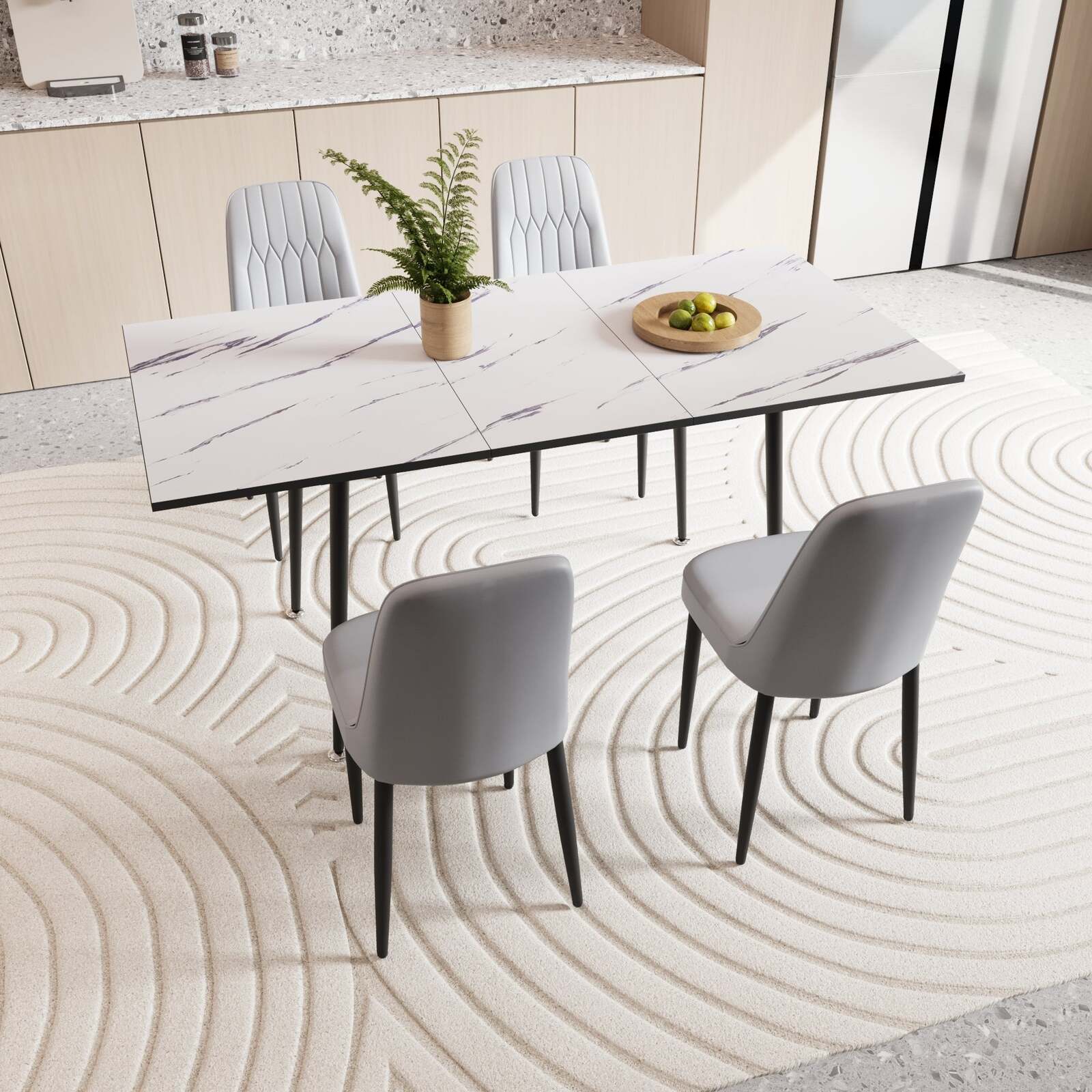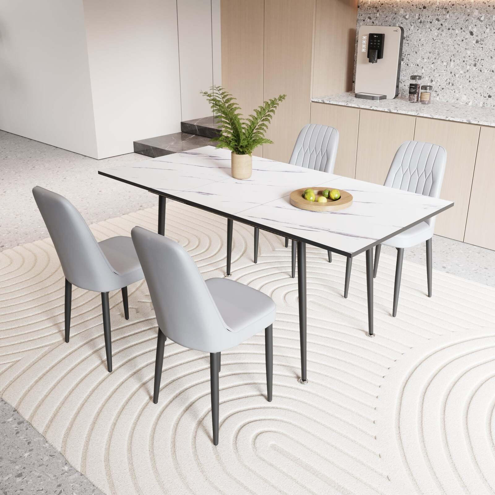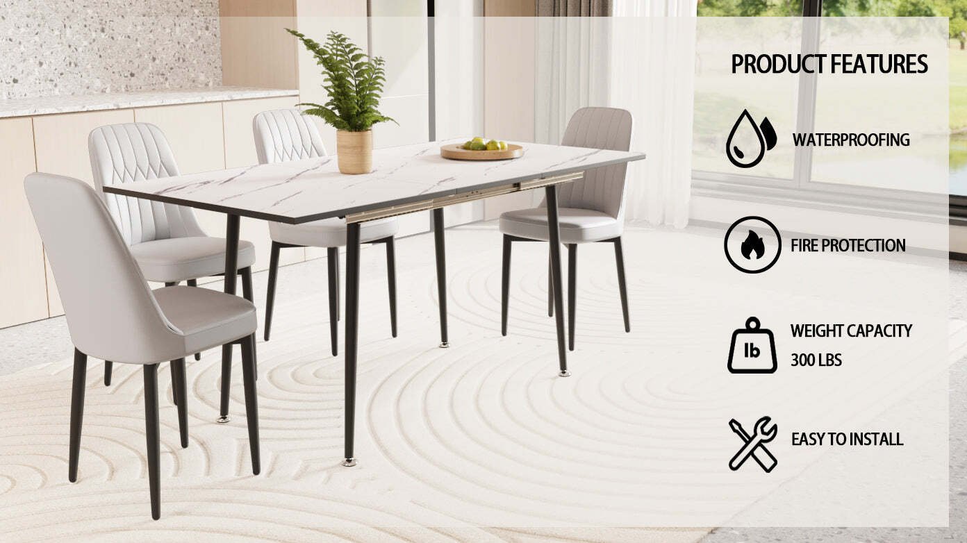 - Expandable Dining Table Set for 2-6 | PU Chairs | Black Metal Legs