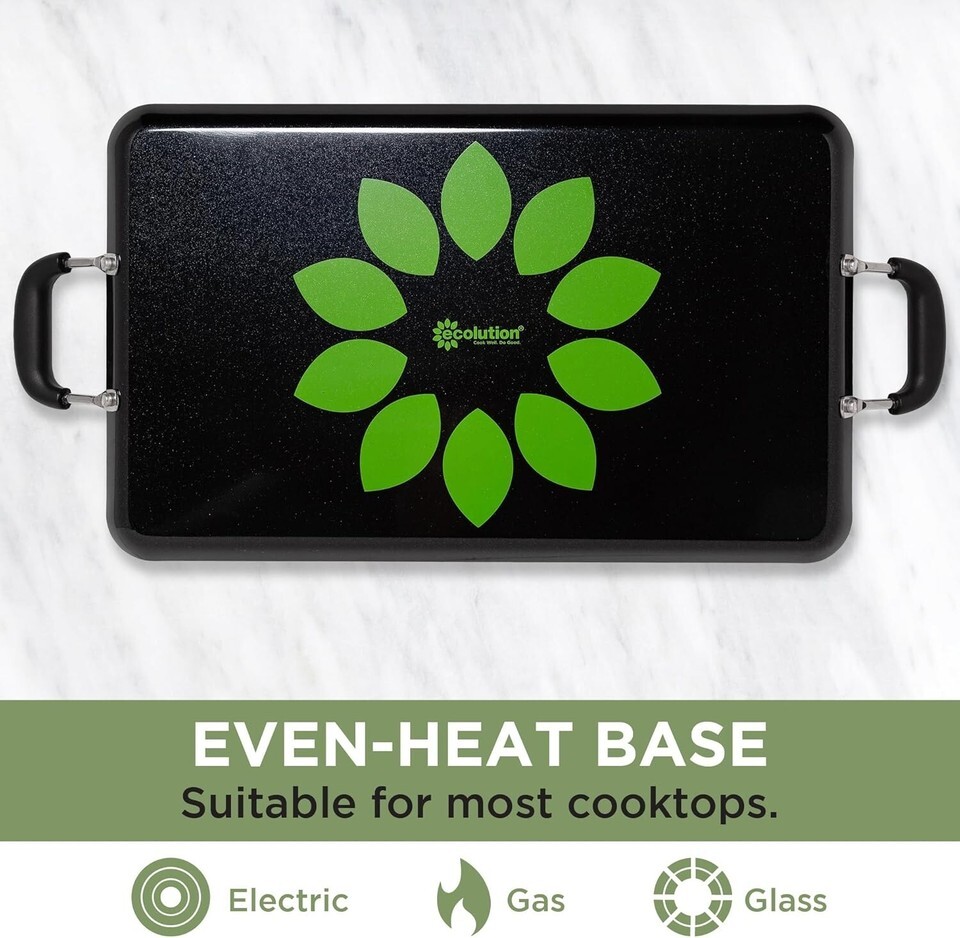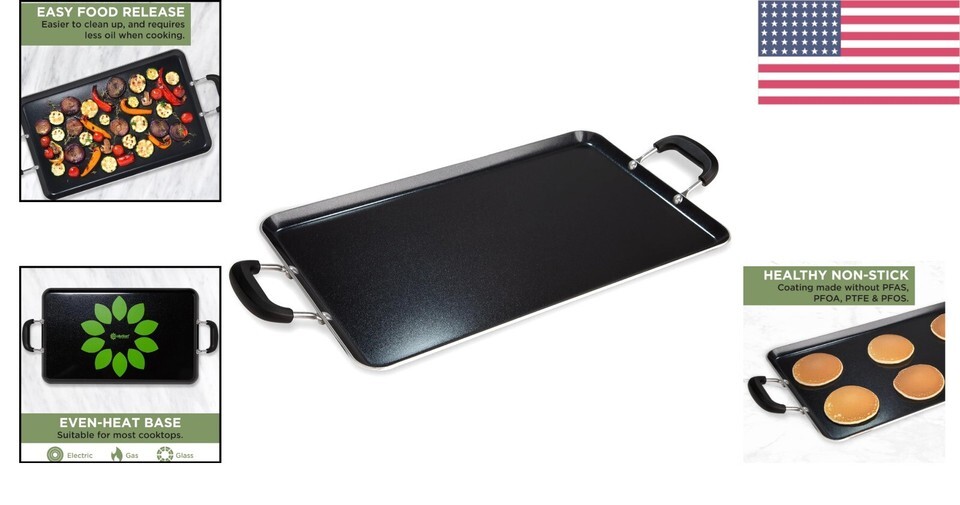 Easy to Use: Designed with dual silicone handles for hassle-free transitions from stovetop to counter; it boasts an expansive 18? x 12? cooking surface for family meals.