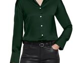 - Express Womens Shirt Green Button Down Satin V-Neck Long Sleeves Relaxed Fit