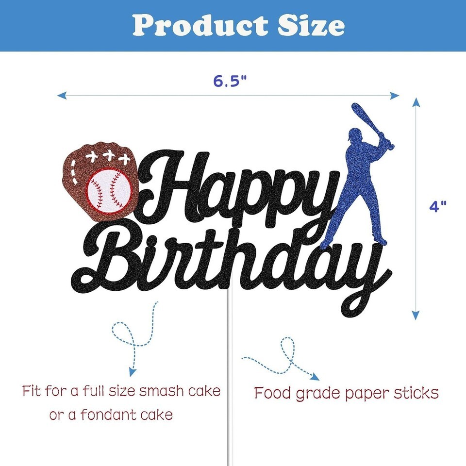 Don't let your celebration go without this sparkling touch ? order your Exquisite Baseball Cake Topper today and make your birthday memorable!