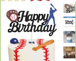 1 PCS Baseball Theme Black double-sided glittery "Happy Birthday" Cake Topper (Pre-Assembled, no DIY required).