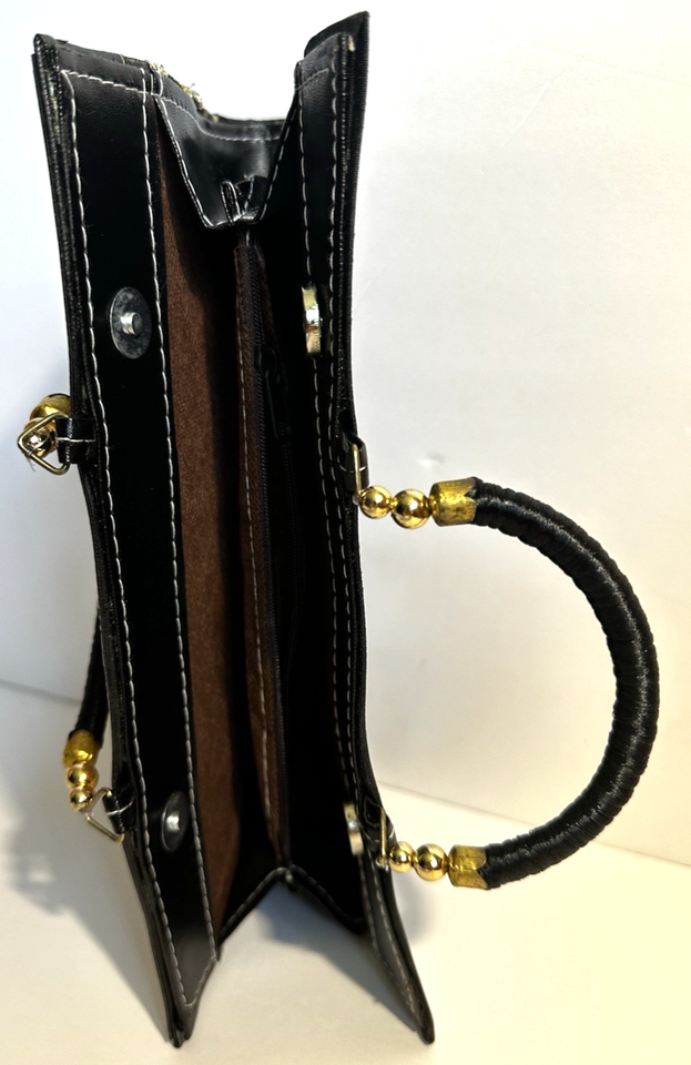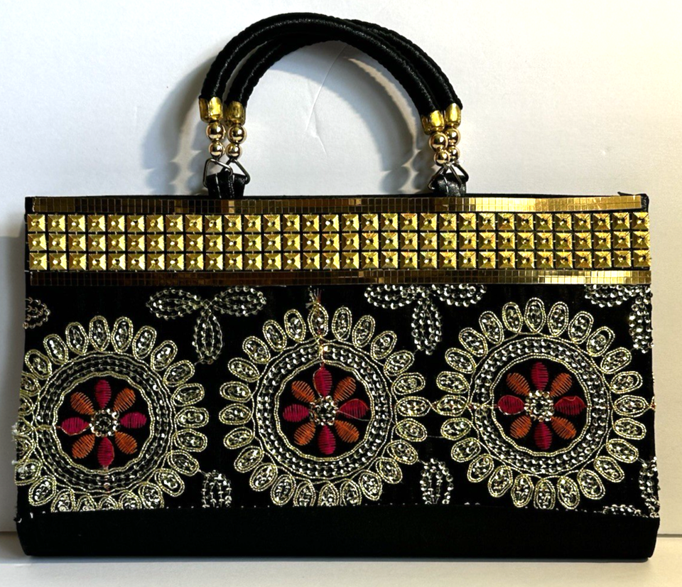 - Exquisite Fancy Indian Bollywood Sequined Evening Black , Gold Clutch Purse-New