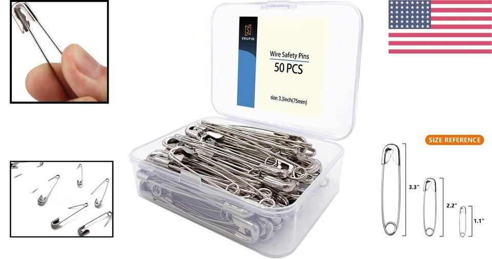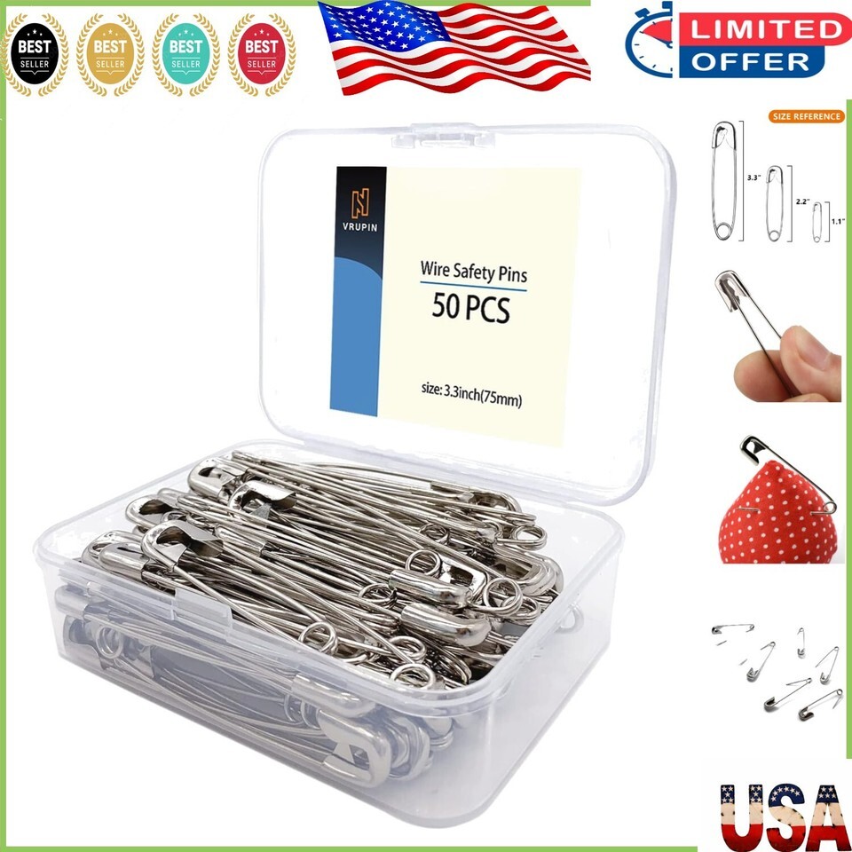 Extra Strong 3.3-Inch Safety Pins - 50pcs Stainless Steel for Sewing & Crafting