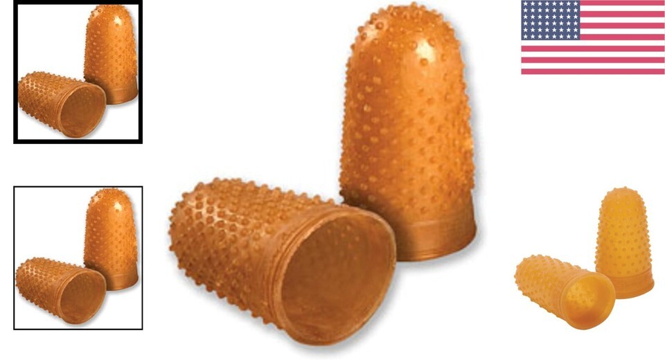 Extra Thick Rubber Finger Tips - 12 Count, Amber, Medium/Large for Comfort