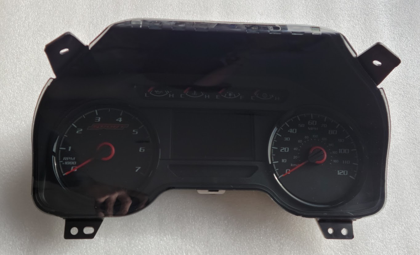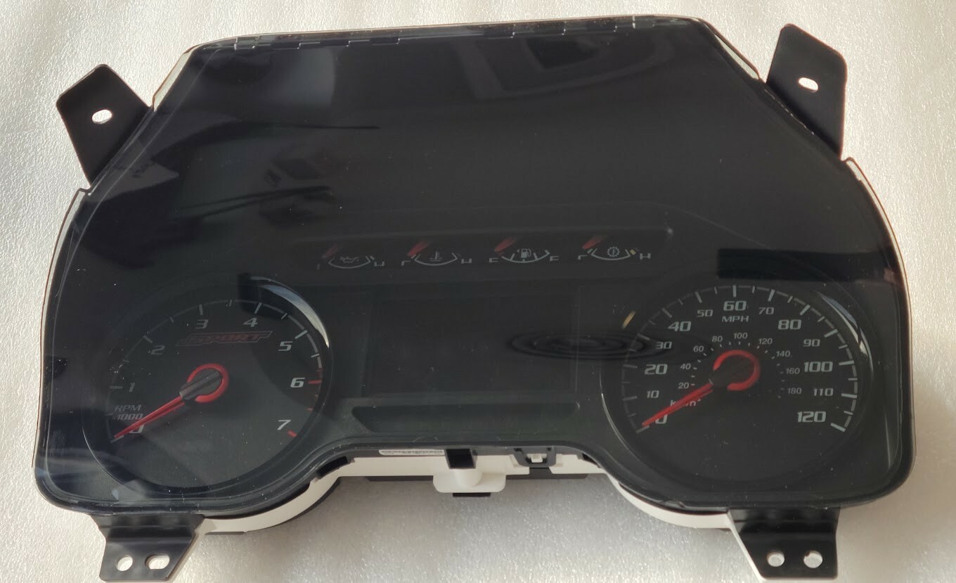 This is a factory original Ford F150 Sport gauge cluster. It is the version with 4" screen and has never been installed or programmed. (0 on the odometer!) The primary units display as imperial (MPH, for example) but it also shows metric units (KPH) in smaller font on the speedo. There are cluster companies who can convert it to show KPH as the primary font and display type, if it bothers you. It is engineering number LL3T-10849-BJ_. (BJA, BJB, BJC, etc. BJA through BJZ interchange.)