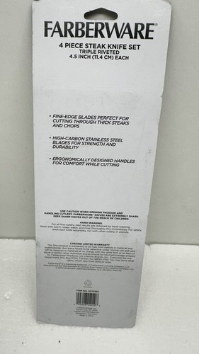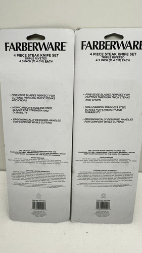 - FARBERWARE Classic 4 Piece Steak Knife Set Lot Of 2 Stainless Steel Blade