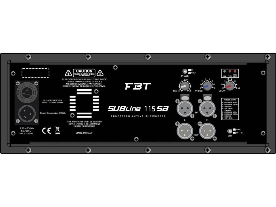 FBT Subline 115 SA 15 Inch Portable Active Subwoofer Loudspeaker 700 Watts