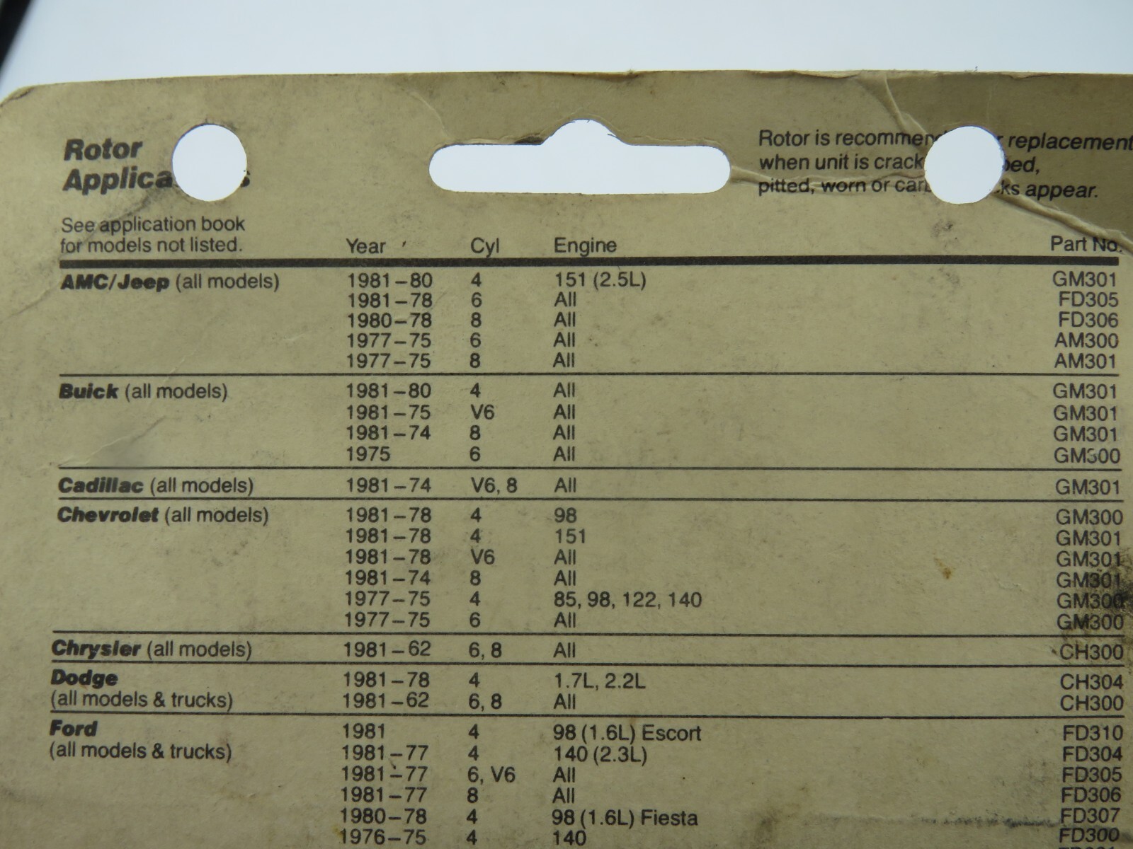 - FD-306 Distributor Rotor for Ford Cobra 8 Cyl 1977-82 - NOS