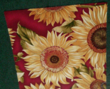 This fabric listing is by Hoffman that features 2-tone golden yellow sunflowers on a cranberry red background. This measures 9-1/2 square. This is new fabric, 100% cotton, never washed. I am selling this for $2.25 $1.00 shipping. I combine shipping on multiple orders.