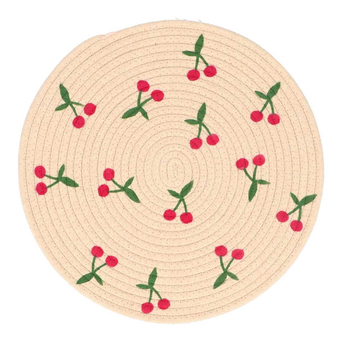 A pretty cherry round fabric placemat by Gisela Graham London. It's a stylish and practical way to protect your furniture. Match it with our fabric coasters and mugs
