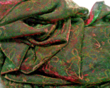 This fabric listing is by Timeless Treasures that could be a scarf or head piece geared toward Christmas of red and green acetate mix embellished with jingle bells. Its measurement is 36" x 60". This is new fabric, 100% cotton, never washed. I am selling this for $4.75 flat shipping via first class USPS of $4.25. I combine shipping on multiple orders.