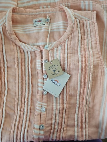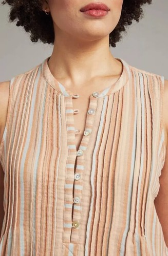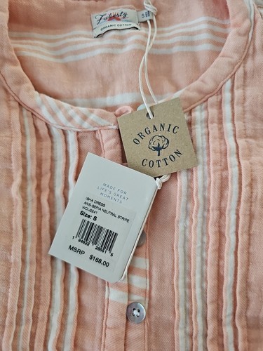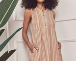 - Faherty Isha Sepia Neutral Stripe Organic Cotton Mini Dress Pockets Sz M, NWT!