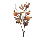 Bring the warmth of fall into your home with this set of six Fall Pomegranate Twig Sprays. Featuring warm orange and beige tones, these sprays showcase realistic pomegranate fruit nestled on rustic twigs, complemented by long leaf accents. The wired stems provide sturdy support for versatile placement in vases, wreaths, or garlands. Perfect for adding a natural, seasonal touch to your Thanksgiving d cor, these sprays enhance any display with their rich autumn colors and textures.