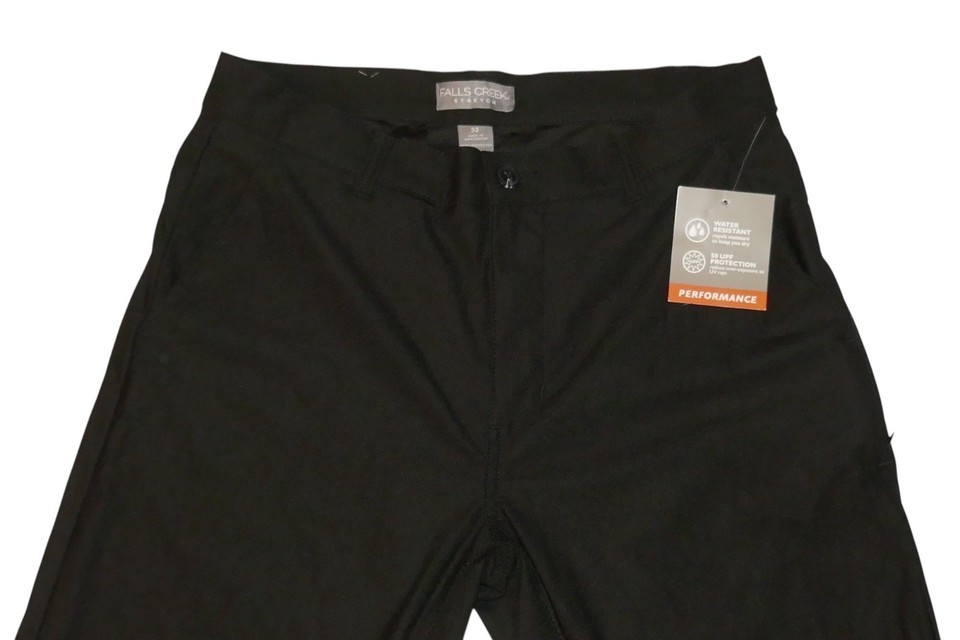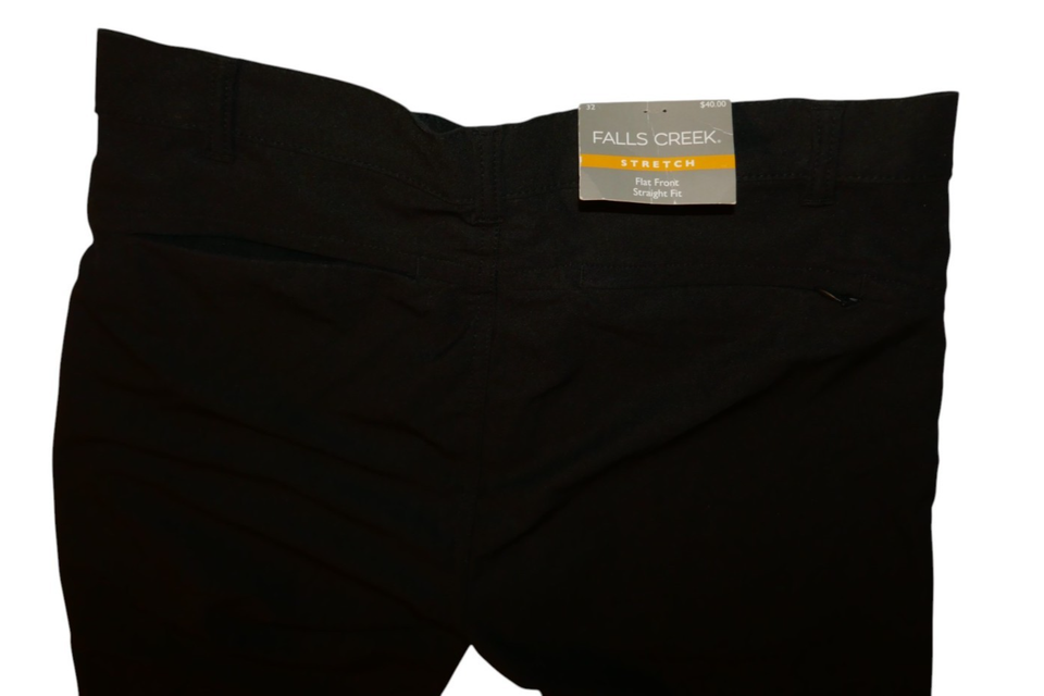 Falls Creek Men's Stretch Flat Front Straight Fit Pants Black Size 32