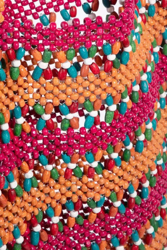 Fame Contrast Wooden Beaded Tote Bag
