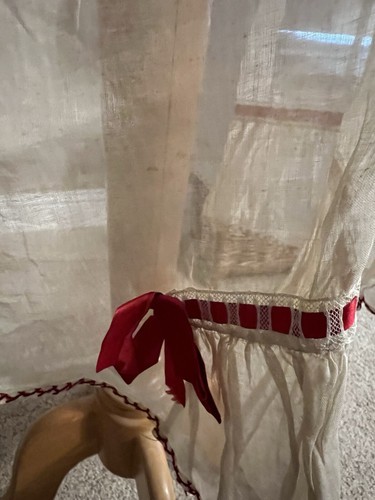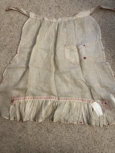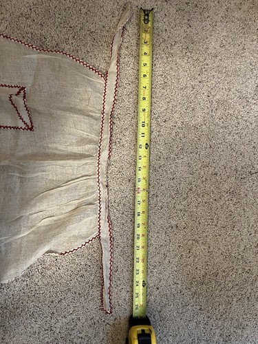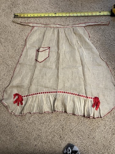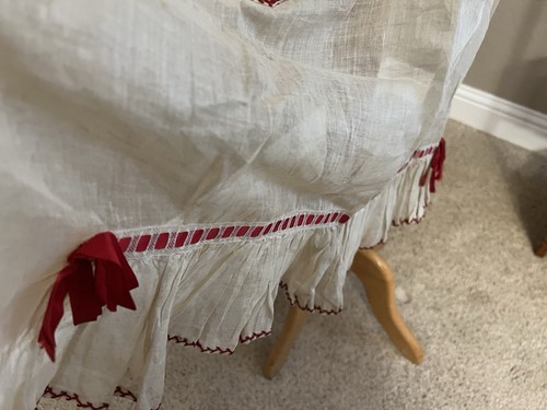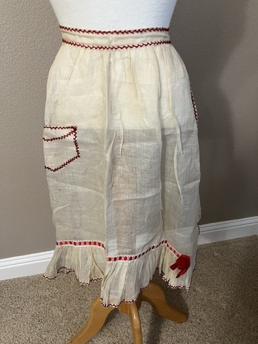 - Fancy Apron - organza with pocket Red embroid And Red Ribbon W Bows 1950's?