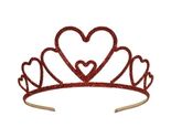 Fancy Heart Costume Tiara. Made of thin metal. Flexible Tiara can be carefully bent/shaped to fit head size. Red Glittered on the front. Glitter does shed. Has plastic hair combs that can be put on the ends to help secure wear (if desired). Could be used with costumes such as listed below: For Adult Use - Not intended for children.