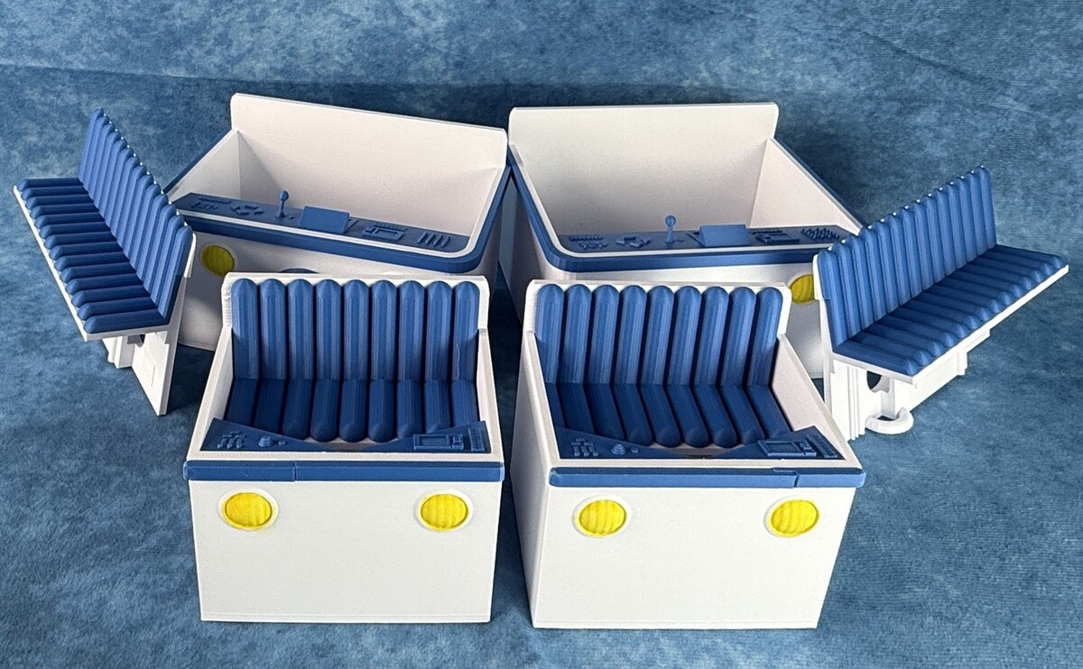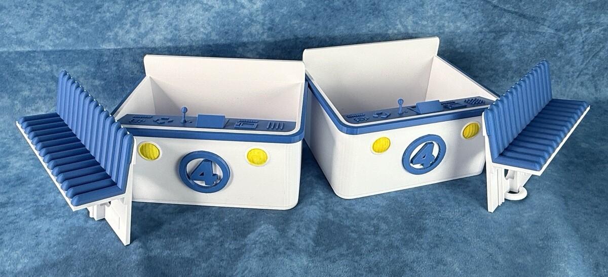 Fantastic 4 flying bathtub fantasticar vehicle toys, set of 4, for Marvel legends 6? figures, some hand painting to the fronts, removable seats, plastic, 3-D printed, these are nice, as pictured, condition as pictured, may have minor lines, marks, or rough spots, no cancellations or returns, I?ve got more cool toys for sale, please visit my store.