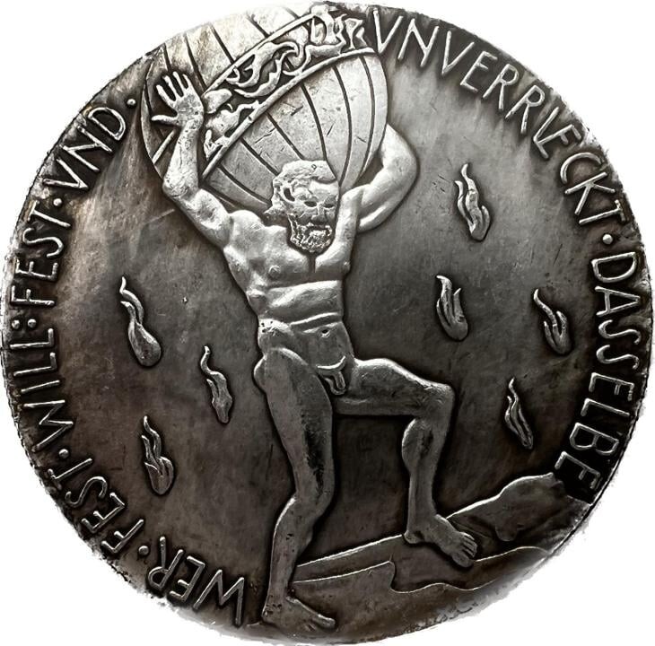 Presentation de la Fantasy Medal of Atlas : Commemorating the Dawn of WWI (1914), une piece remarquable qui resume la signification historique et le poids emotionnel des premiers jours de la Grande Guerre. Cette medaille presente un dessin saisissant d'Atlas soutenant un globe massif, entoure de flammes et d'inscriptions qui evoquent l'esprit de nationalisme repandu pendant cette periode tumultueuse. Le relief d'Atlas symbolise le fardeau porte par toutes les nations europeennes apres le declenchement du conflit en 1914, resumant la lutte humaine et la resilience.