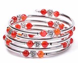 - Fashion Flower Natural Stone Beaded Layered Bracelet Red Agate