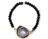 Fashion Geometric Agate Bracelet with Black Beads and Gold Accents Elegant Jewel