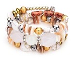 Elegant Design: This bracelet features a fashion-forward geometric color block design. It combines white with gold accents and beads, creating a chic look. Perfect for women who love modern jewelry.